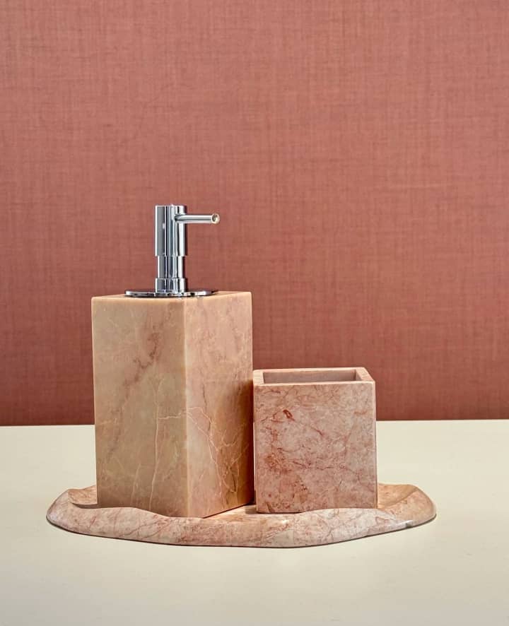Add sophistication to your bathroom or kitchen with this premium marble soap dispenser and holder set. Crafted from high-quality natural marble, each piece features unique veining, giving it a distinct and luxurious look. The dispenser comes with a stainless-steel pump, ensuring durability and ease of use, while the accompanying holder is perfect for storing toothbrushes, razors, or other essentials. A practical yet stylish addition to your home decor.